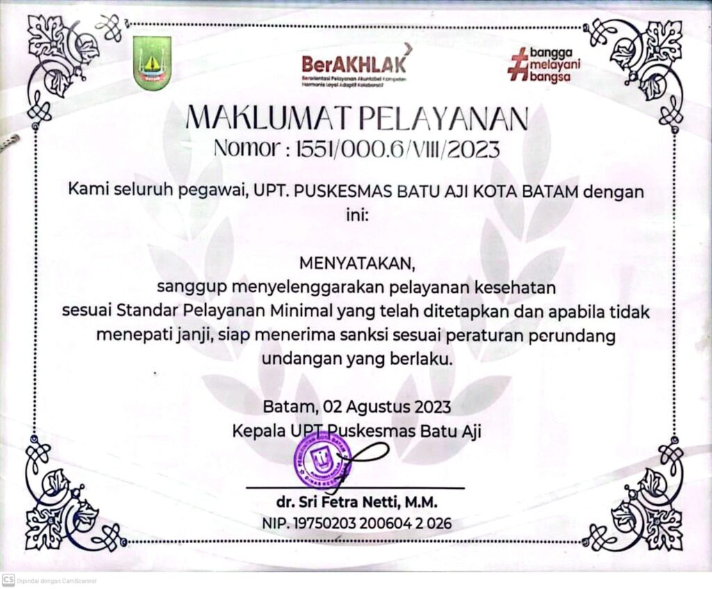 Maklumat Pelayanan Puskesmas Batu Aji: